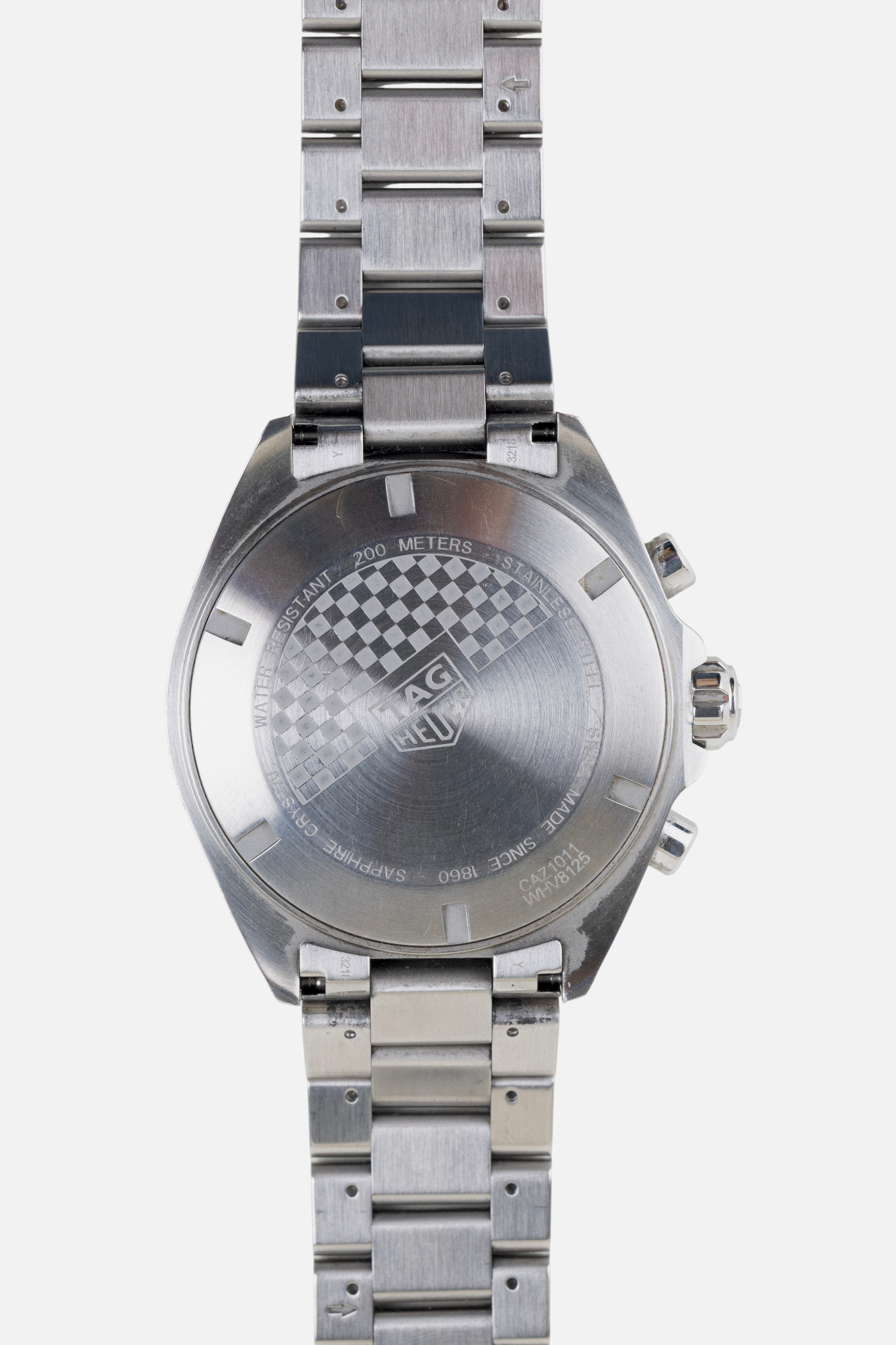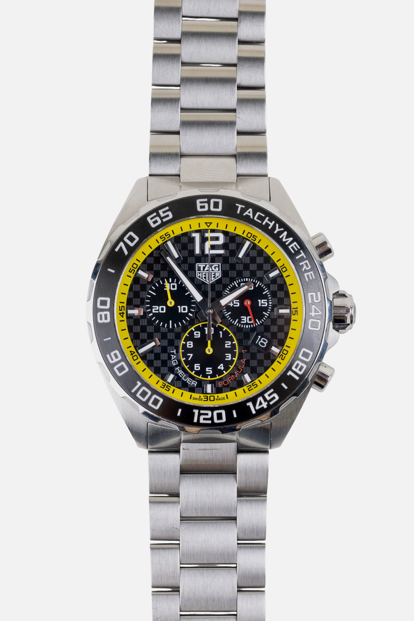The TAG Heuer Formula 1 Chronograph embodies the bold spirit of 1980s motorsport—a watch built for speed, precision, and everyday wear. Introduced after TAG’s acquisition of Heuer in 1986, it was the first model to carry the TAG Heuer name, signalling a new era for the brand. Its quartz chronograph movement, high-contrast dial, and racing-inspired bezel made it instantly recognisable on and off the track. Designed with the same energy that defined Formula 1 itself, it combined bright colour schemes and robust materials with Swiss precision timing. The collection’s enduring success led TAG Heuer to reimagine it for a new generation, keeping the chronograph DNA alive in today’s models. Loved for its sporty character and historical significance, the Formula 1 Chronograph remains one of TAG Heuer’s most iconic and approachable timepieces—a true celebration of the brand’s racing heritage.