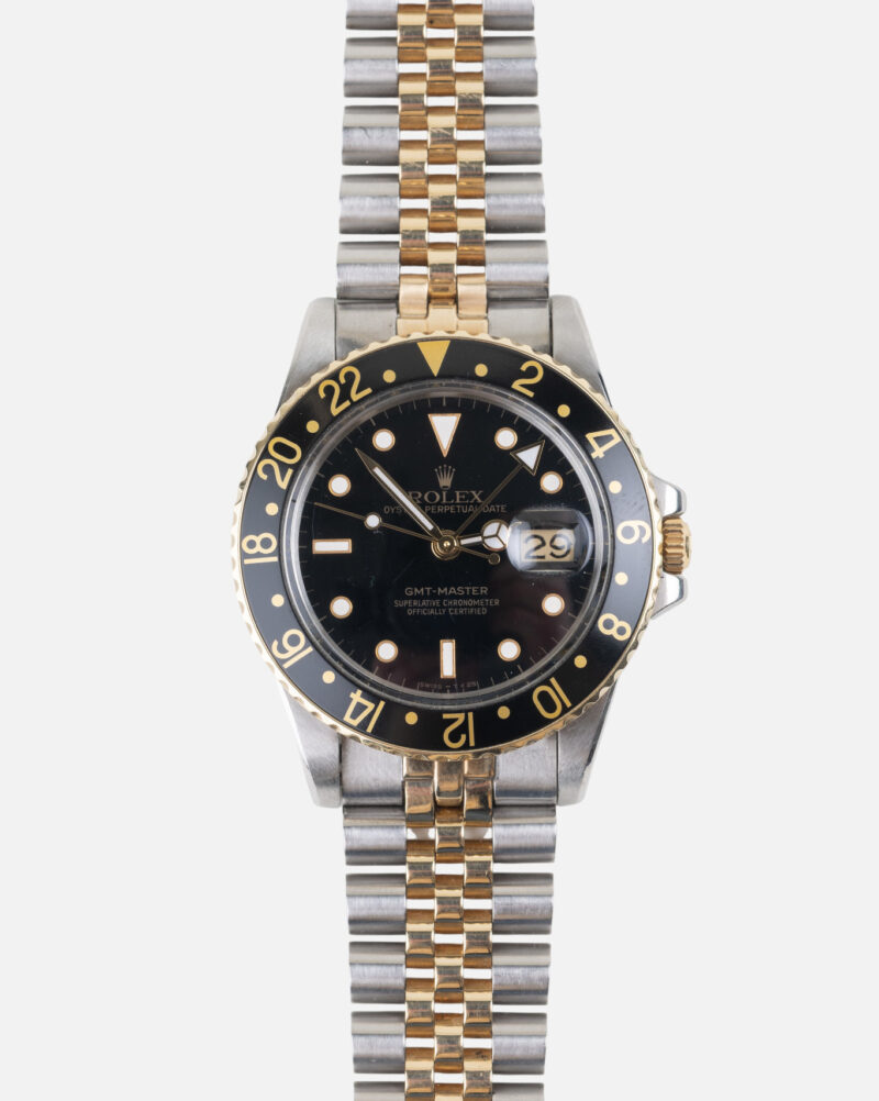The Rolex GMT-Master 16753 two-tone has quietly become one of the most desirable vintage pieces among collectors, and for good reason. Introduced in the late 1970s as part of Rolex’s evolution of the iconic GMT line, it bridged the gap between rugged tool watch and luxury travel companion. Built for professional pilots yet embraced by the style-conscious traveler, it introduced the Calibre 3075, the first GMT-Master movement with a quickset date. The mix of stainless steel and yellow gold gave the watch a distinctive character during a time when two-tone designs defined sophistication. The black-dial version, paired with a black-and-gold rotating bezel, offered a sleeker, more understated look than the famous “Root Beer” variant. Today, its period-correct charm, technical heritage, and growing scarcity have made the 16753 a standout in the vintage Rolex market that is admired not just for its looks, but for the important role it played in the evolution of the GMT-Master line.